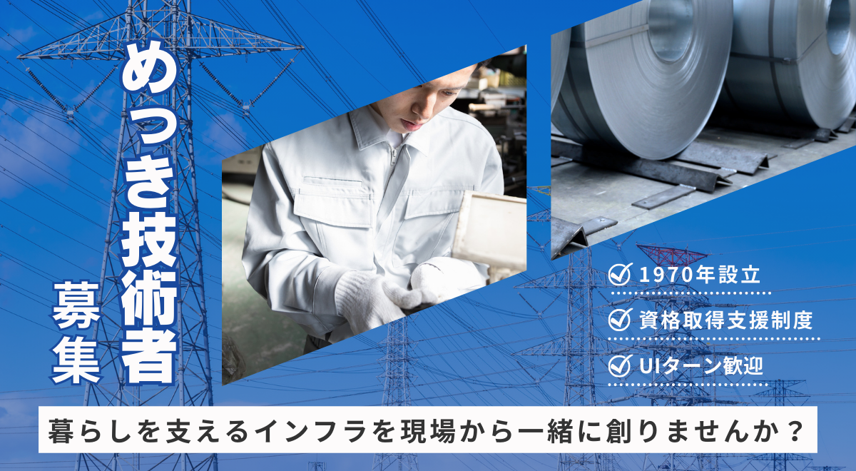 | 仕事内容 | 『鉄塔』の鍍金(めっき)作業をお任せします。 【具体的な業務内容】 ・前処理作業(加工鋼材の受入、めっき前の準備作業) ・めっき作業(溶融亜鉛めっき槽への浸漬作業) ・仕上作業(めっき作業後のざらつき等除去作業と目視確認) ・仕分発送作業(仕上後の製品の仕分および発送) 基本的に前処理作業と仕上作業がメインになります。 変更の範囲:会社の定める業務 <企業情報> 鉄塔をはじめとする鋼構造物の製造や溶融亜鉛めっき加工を主とし、鋼構造物の設計・製作・鍍金・施工までの一貫対応を特徴とする「ものづくり」でインフラ整備に力を尽くしてきました。 鉄塔では、送電線鉄塔や携帯電話等の電波を送受信するための通信鉄塔・テレビ塔・防災無線鉄塔などがあり、他の鋼構造物では、高速道路や主要幹線道路等に設置されている門型標識柱、再生可能エネルギーのひとつでもある太陽光発電用ソーラーバネル設置用架台等があります。 私たちの生活に必要不可欠である、「電気」や「情報」などを通じて「地球と調和する製品」づくりを目指しています。 |